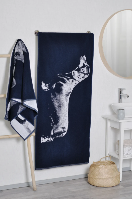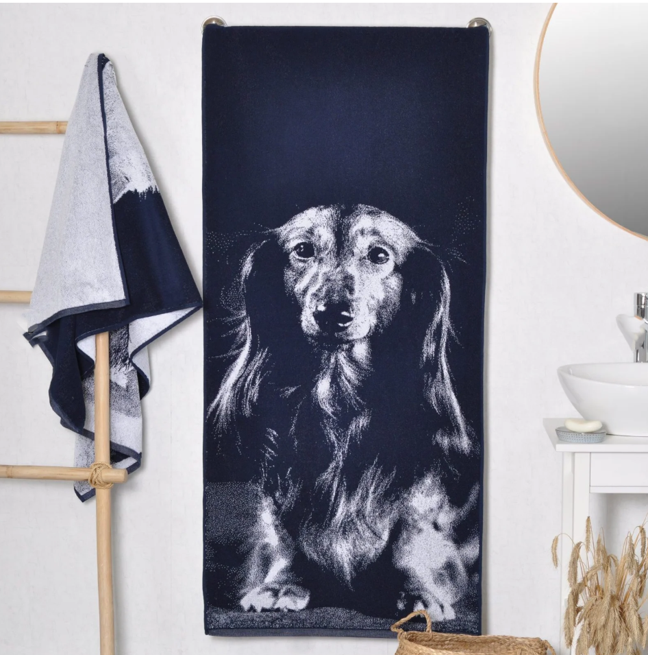 Droog jezelf af in stijl met deze superleuke badhanddoek met leuke teckelafbeelding! Deze zachte en absorberende handdoek met een afmeting van 67x150cm is niet alleen praktisch, maar voegt ook nog eens een speels en vrolijk tintje toe aan jouw badkamer.