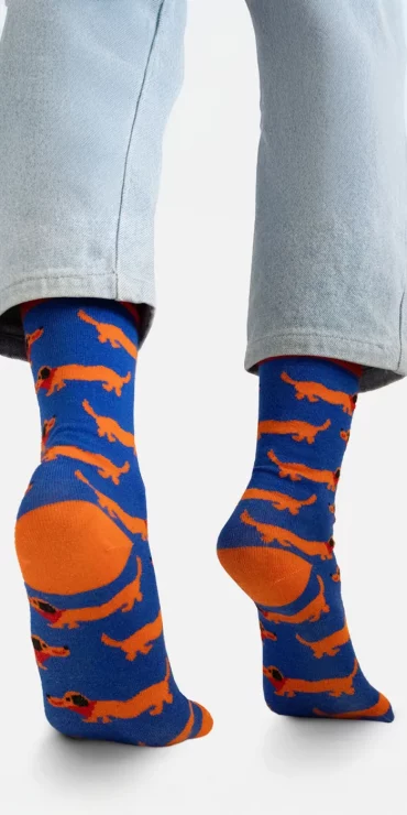 Met deze geweldige kleurrijke teckel om je nek val je zeker op! Deze leuke mooie duurzame sjaal is gemaakt van 100% organisch katoen. Samen met de bijpassende leuke opvallende sokken doe je niet anders dan stralen!