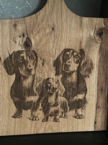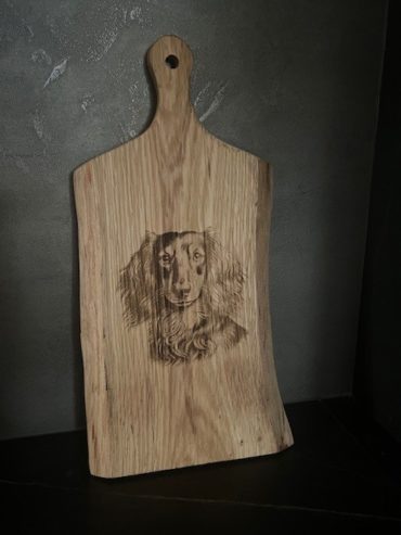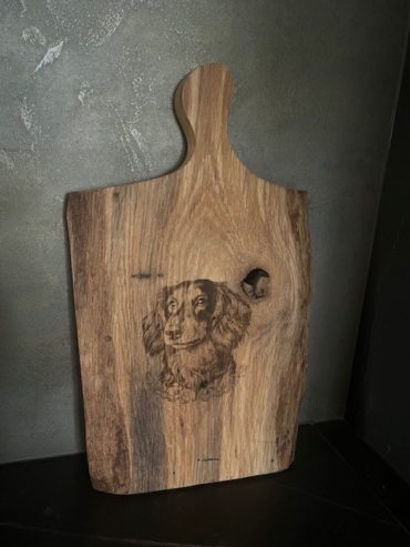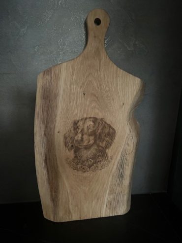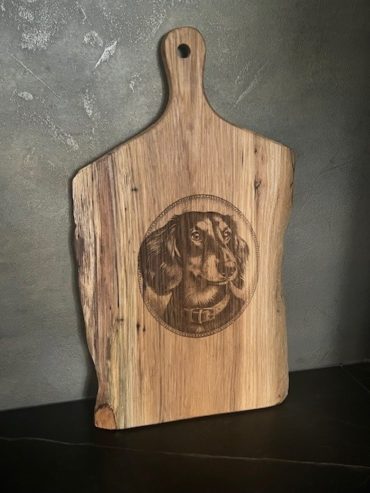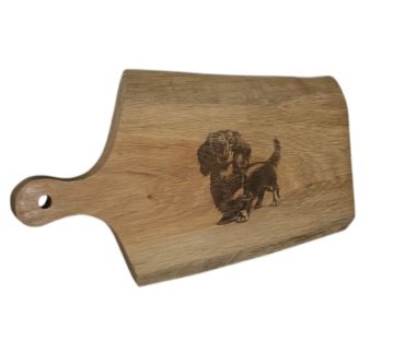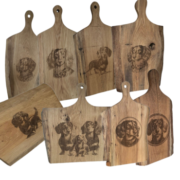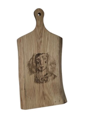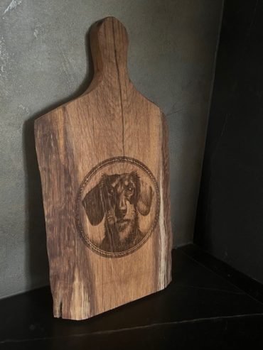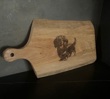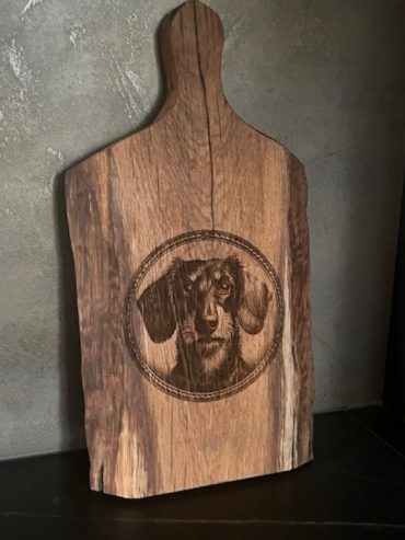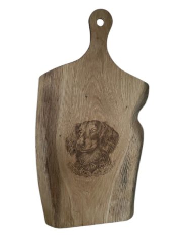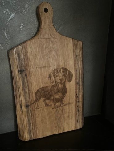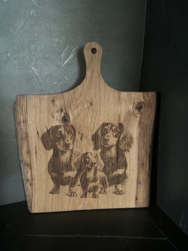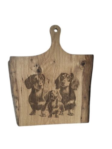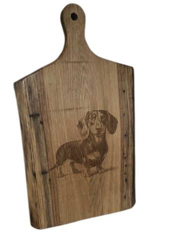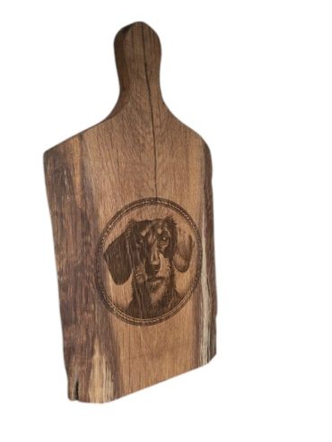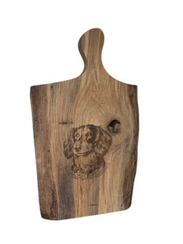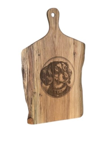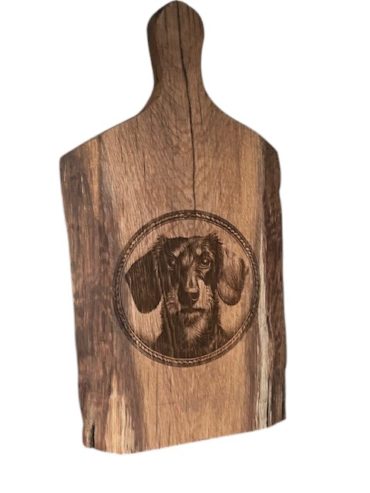 Zware, robuuste snijplanken met een authentieke rustieke uitstraling! De gedetailleerde teckel afbeeldingen geven de keuken een speels karakter. Duurzaam en slijtvast, ideaal voor dagelijks gebruik. De natuurlijke nerven in het hout maken van de snijplank een mooi decorstuk!