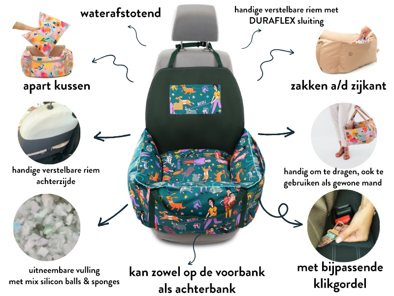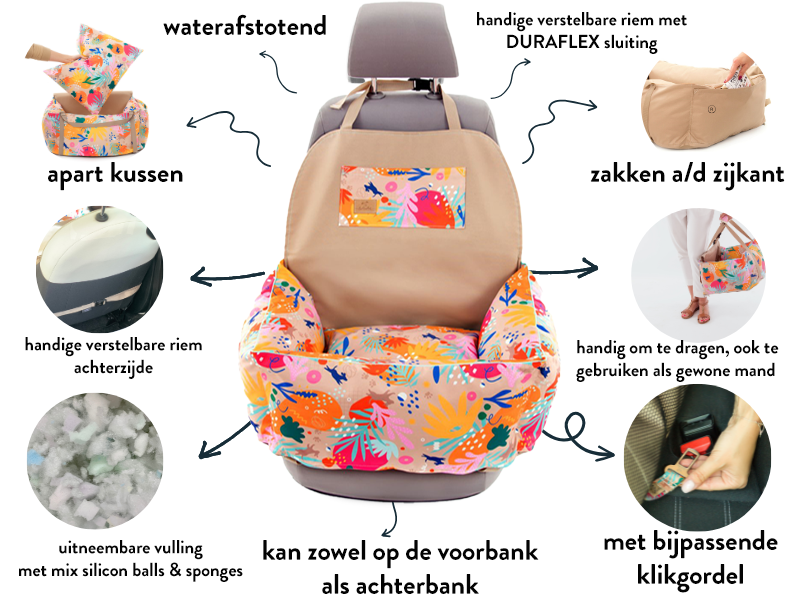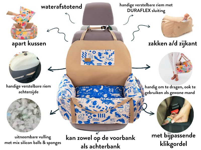 Met schattige en fleurige honden- en teckelprintenĀ zijn deze comfortabele autostoelen niet alleen een prachtige toevoeging aan je auto, maar zorgt hij ook voor de ultieme reiservaring voor je hondenvriend. Of je nu een korte rit naar de hondenspeeltuin maakt of een lange autorit naar een vakantieadres, deze extra comfortabele mand is de ideale oplossing voor honden die wat extra ondersteuning nodig hebben tijdens het reizen.