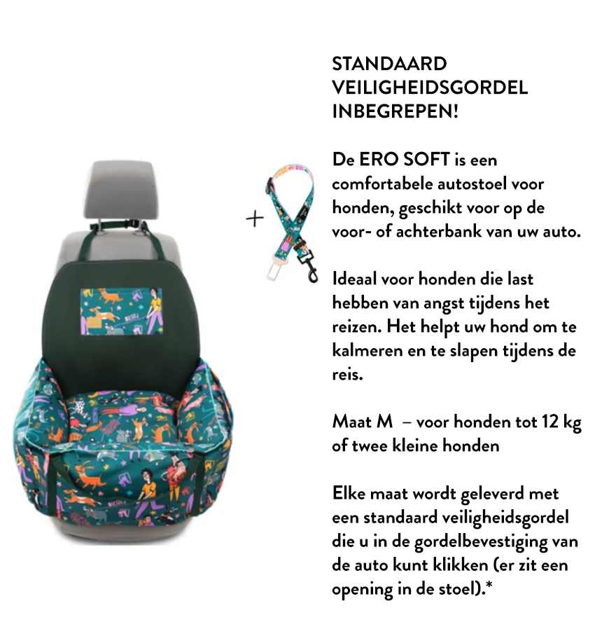 Dankzij het zachte, knusse ontwerp biedt de automand een veilige haven voor honden die soms wat angstig zijn onderweg. Het helpt ze te kalmeren en zelfs heerlijk in slaap te vallen terwijl jij geniet van de rit! De grote maat medium is geschikt voor honden tot 12 kg of eventueel 2 kleine honden.