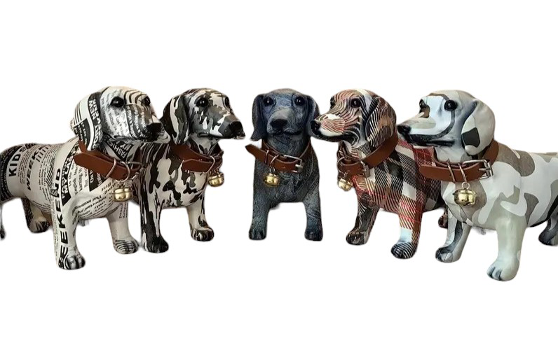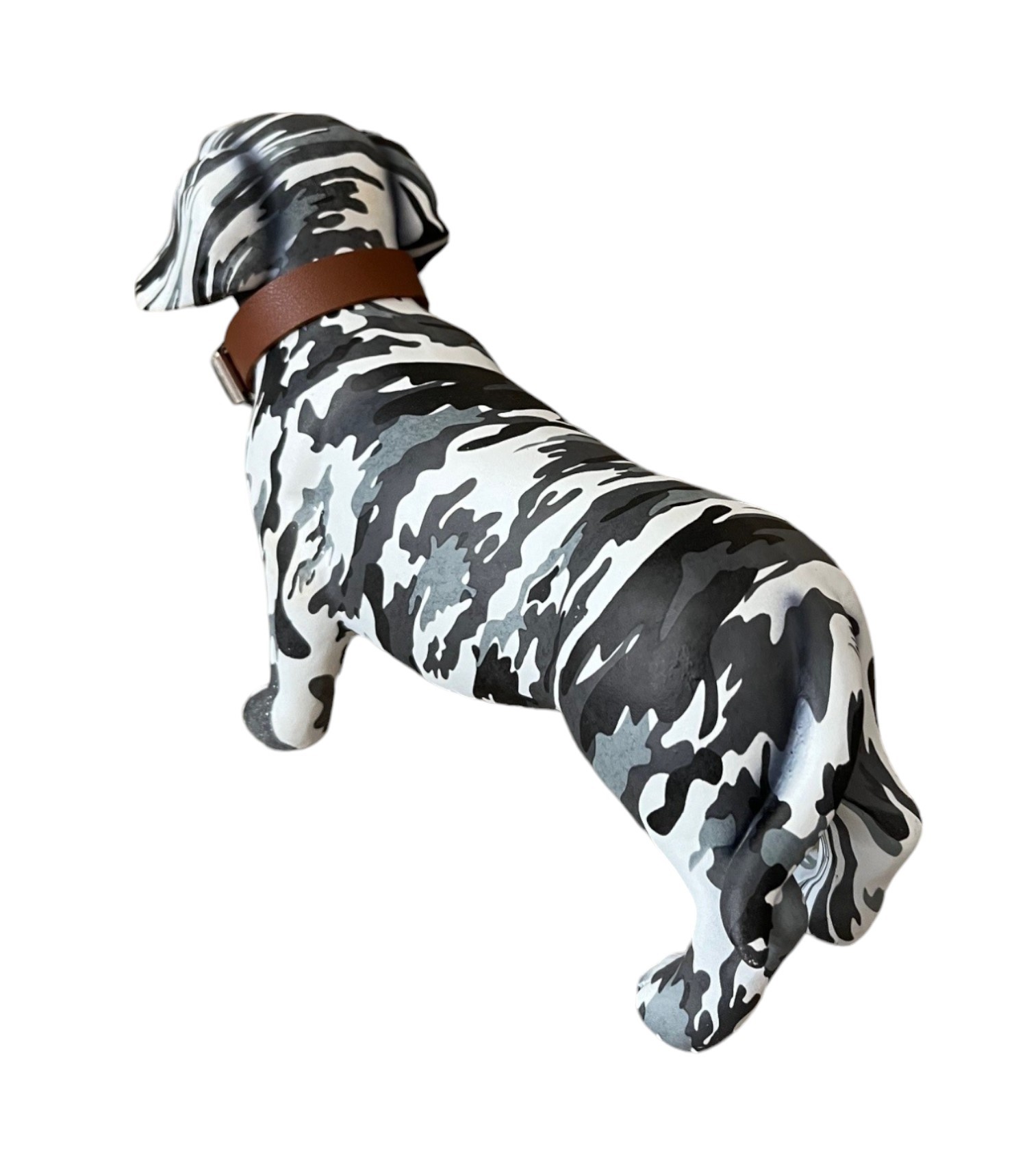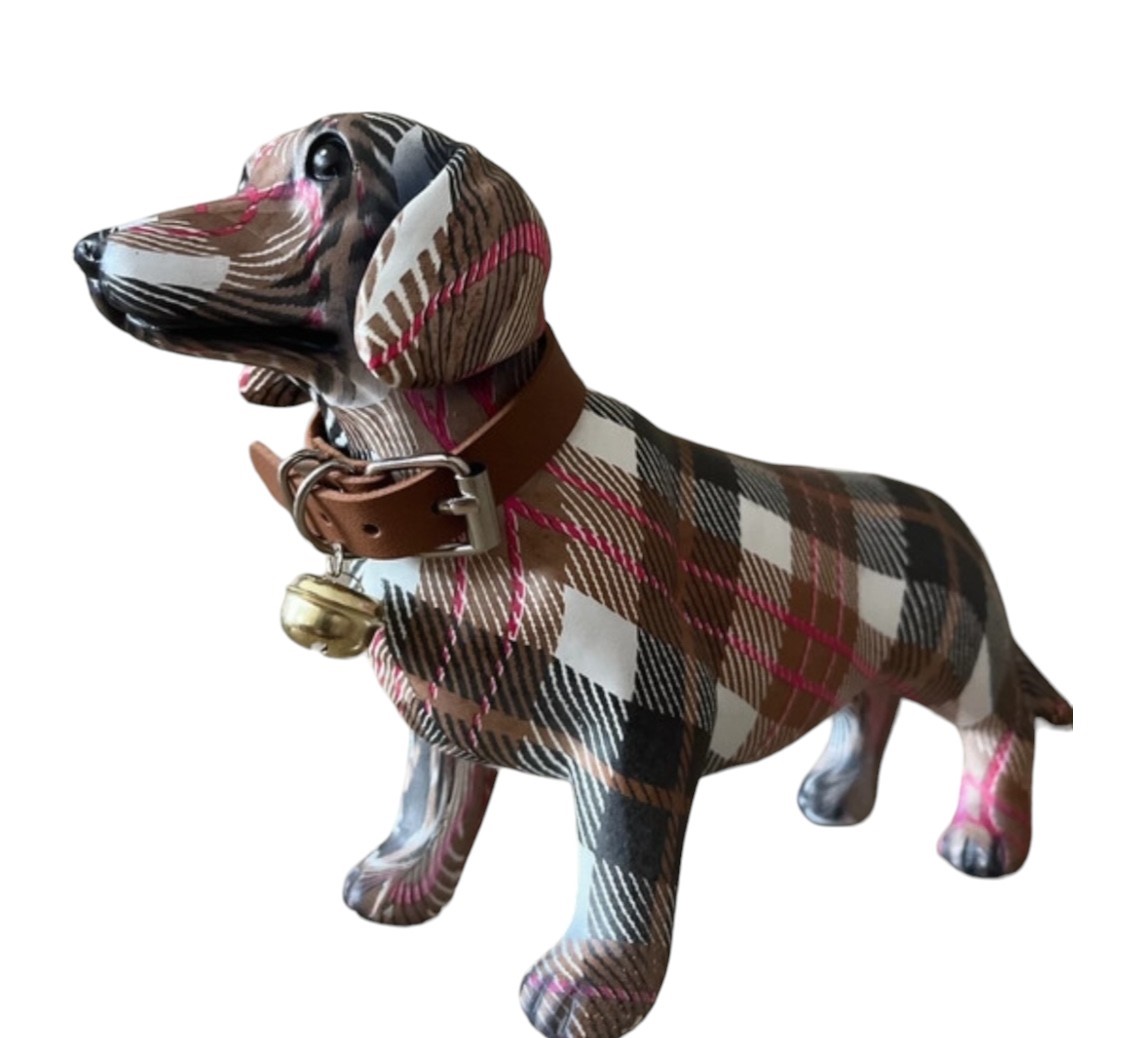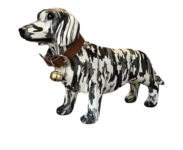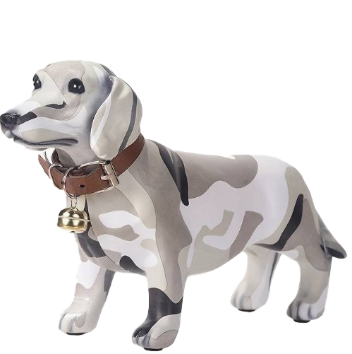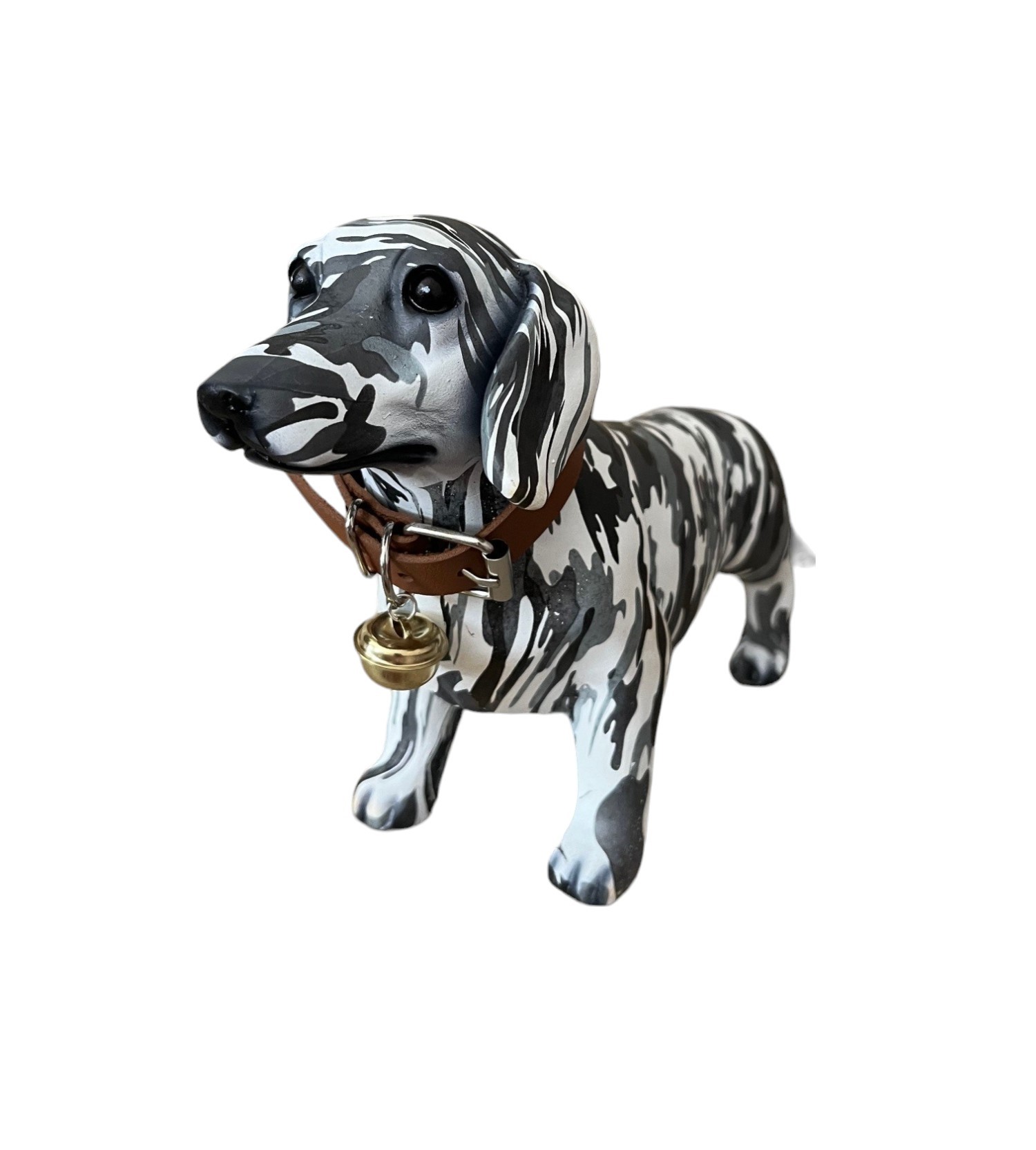 De supermooie prints van deze hondenteckels geven hen een unieke uitstraling. Het levensechte halsbandje met belletje maakt het plaatje compleet en geeft hem een schattig en charmant karakter. Deze hond is een echte eyecatcher en zal zeker de aandacht trekken waar hij ook komt. Met zijn speelse uitstraling en levendige print is hij een aanwinst voor elke verzameling of als decoratie in huis.